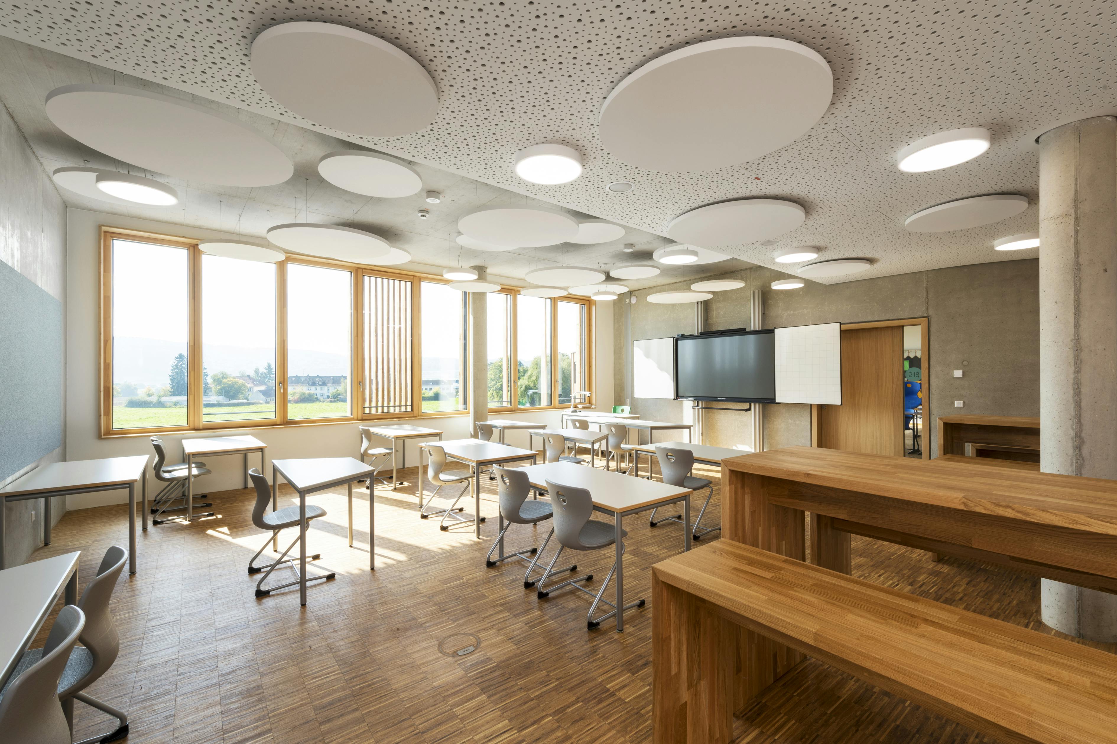 High noise levels are notoriously detrimental to student and teacher well-being, health, and performance. Rockfon acoustic solutions absorb sounds to reduce reverberation, allowing for tranquil environments where teachers can comfortably instruct and students are more likely to focus.