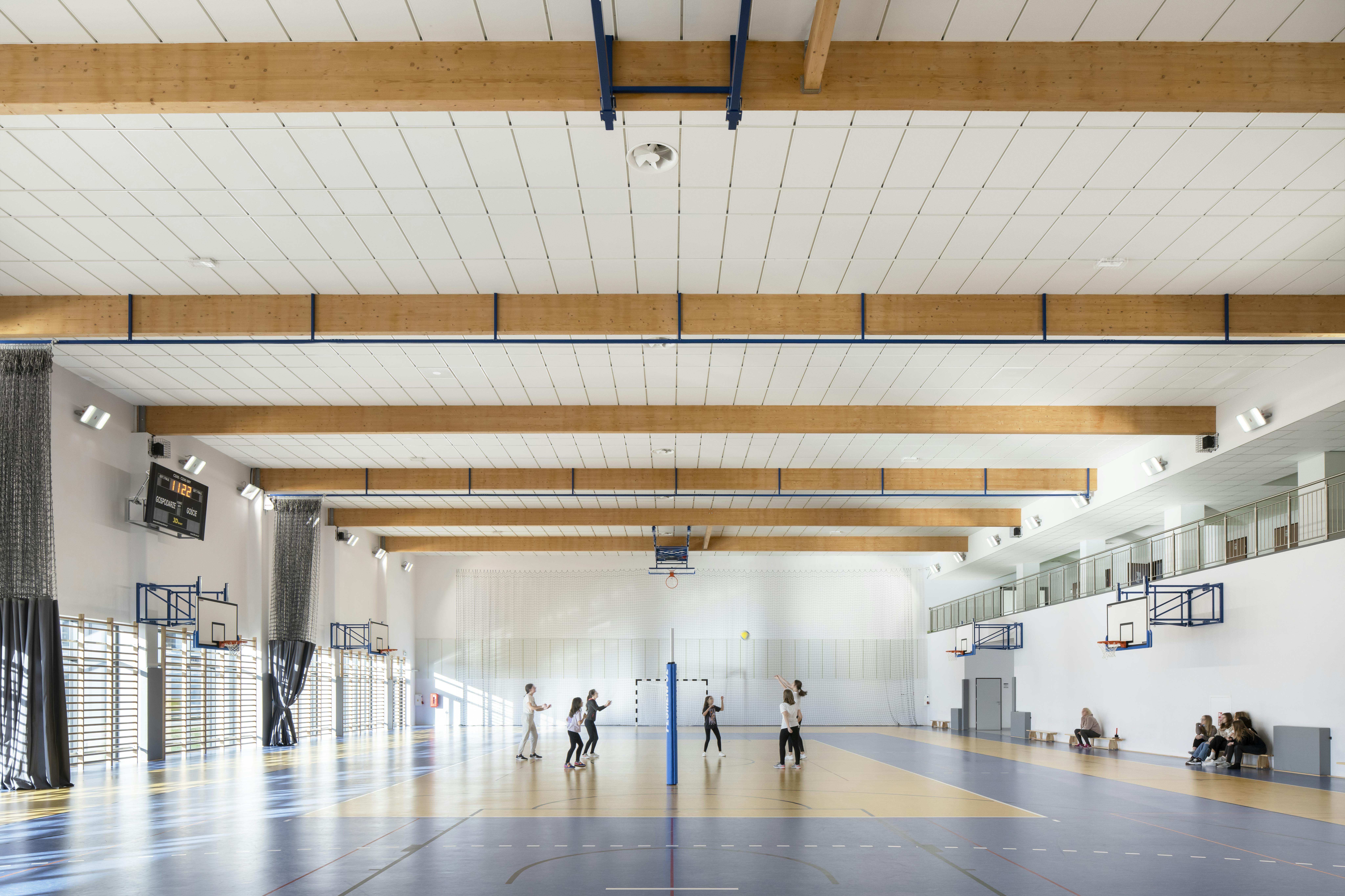 Laughter, movement, and music all contribute to the soundscapes of school and university gymnasiums. Regulating them for noise reduction purposes can spoil the fun involved. Rockfon acoustic solutions absorb sounds to reduce reverberation, allowing for merriment.