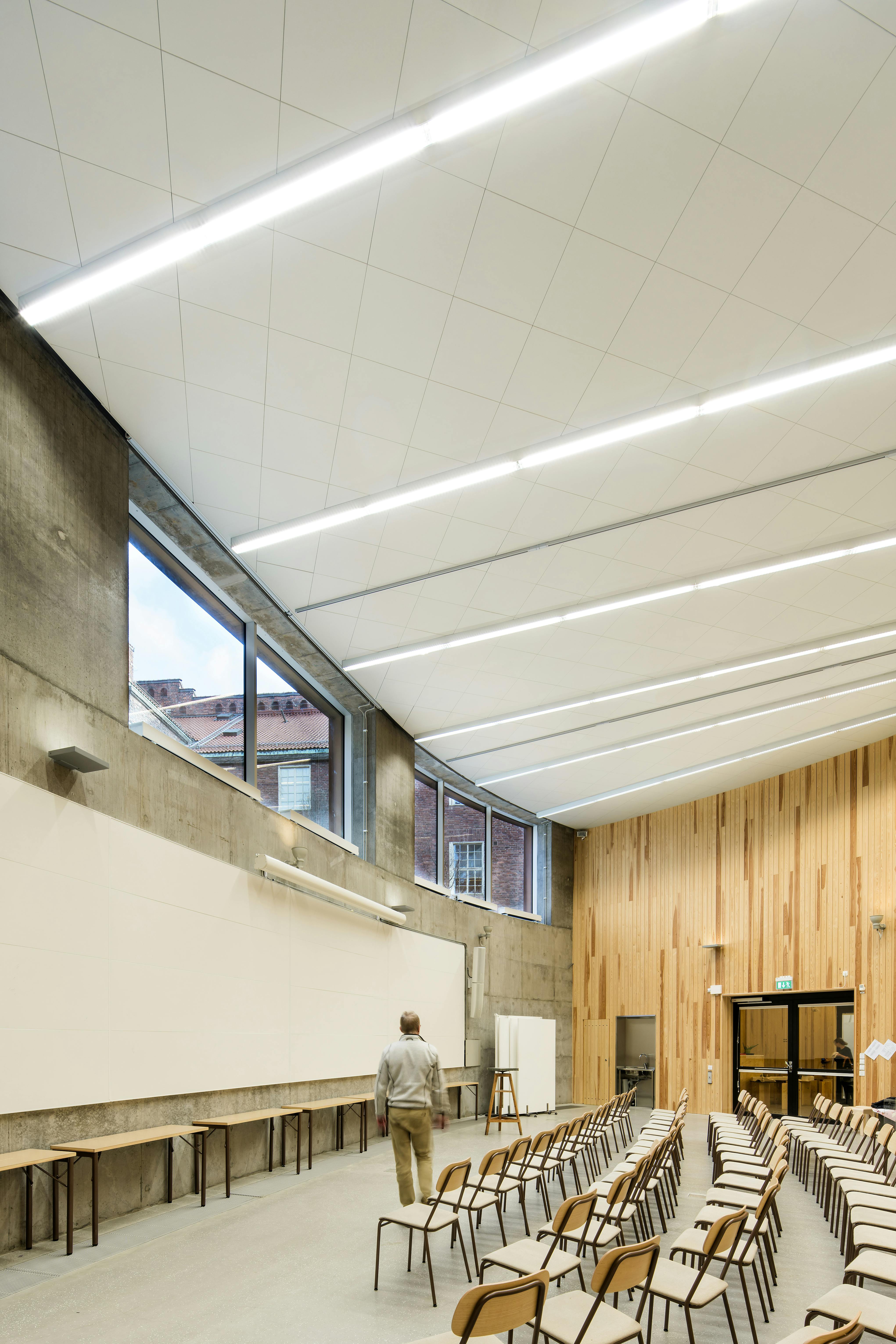 High noise levels are notoriously detrimental to student and professor well-being, health, and performance. Rockfon acoustic solutions absorb sounds to reduce reverberation, allowing for tranquil environments where professors can comfortably instruct, and students are able to concentrate.